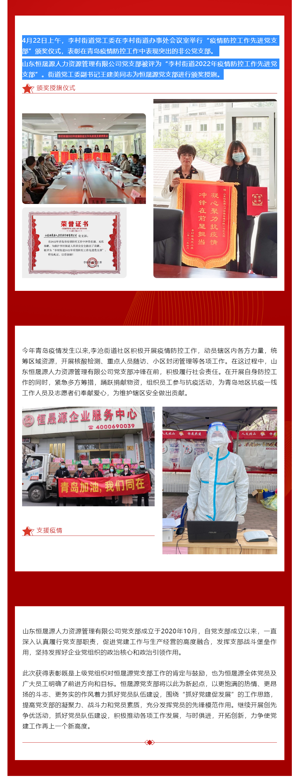 恒晟源获评 “2022年疫情防控工作先进党支部”
