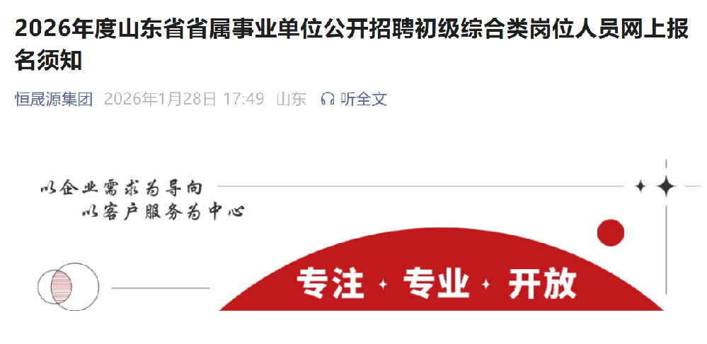 2026年度山东省省属事业单位公开招聘初级综合类岗位人员网上报名须知